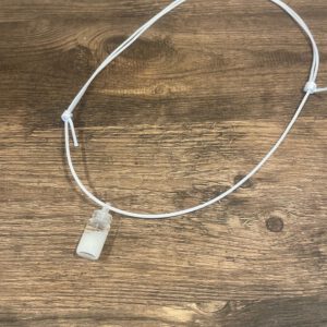 Ketting met bloem hanger, zwart koord en verstelbare sluiting.